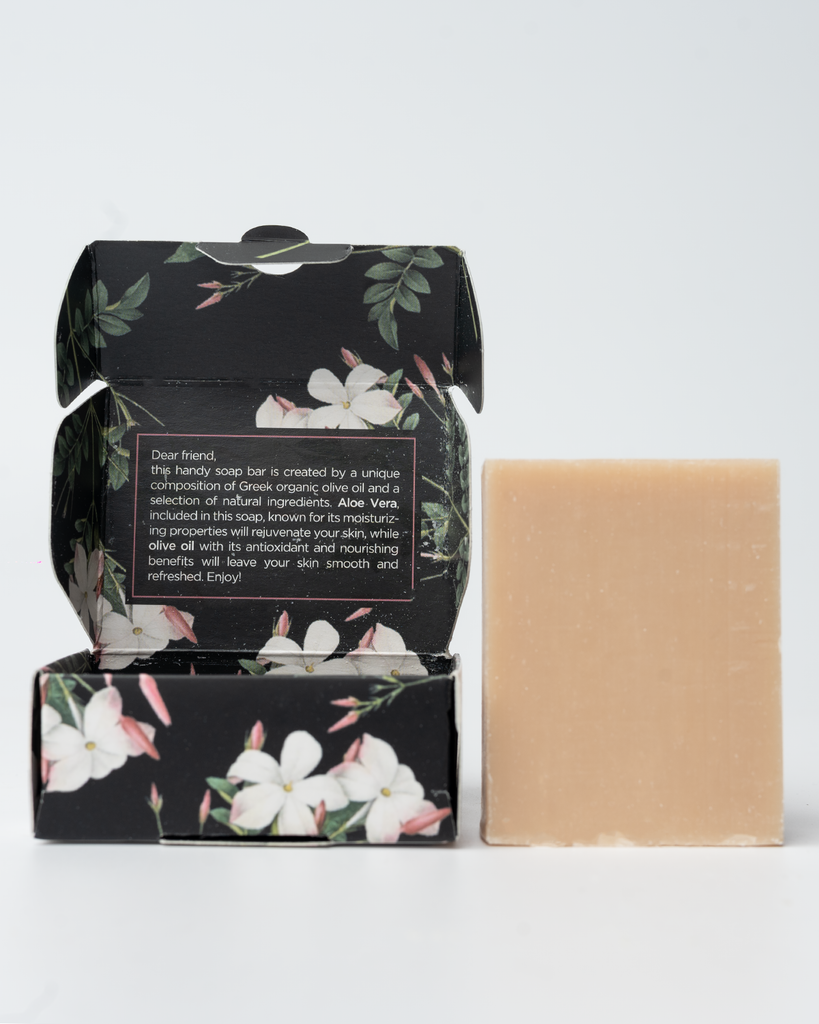 Moisturizing and softening soaps with olive oil and aloe vera. Its rich composition gently cleanses, nourishes and retains the natural moisture and elasticity of skin, leaving it firmer, smoother and radiant. Suitable for both face and body, and for all skin types.