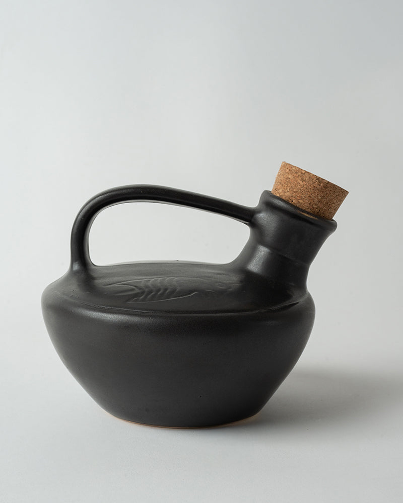 Handmade ceramic oil vessels in 2 different colors made in Crete island.