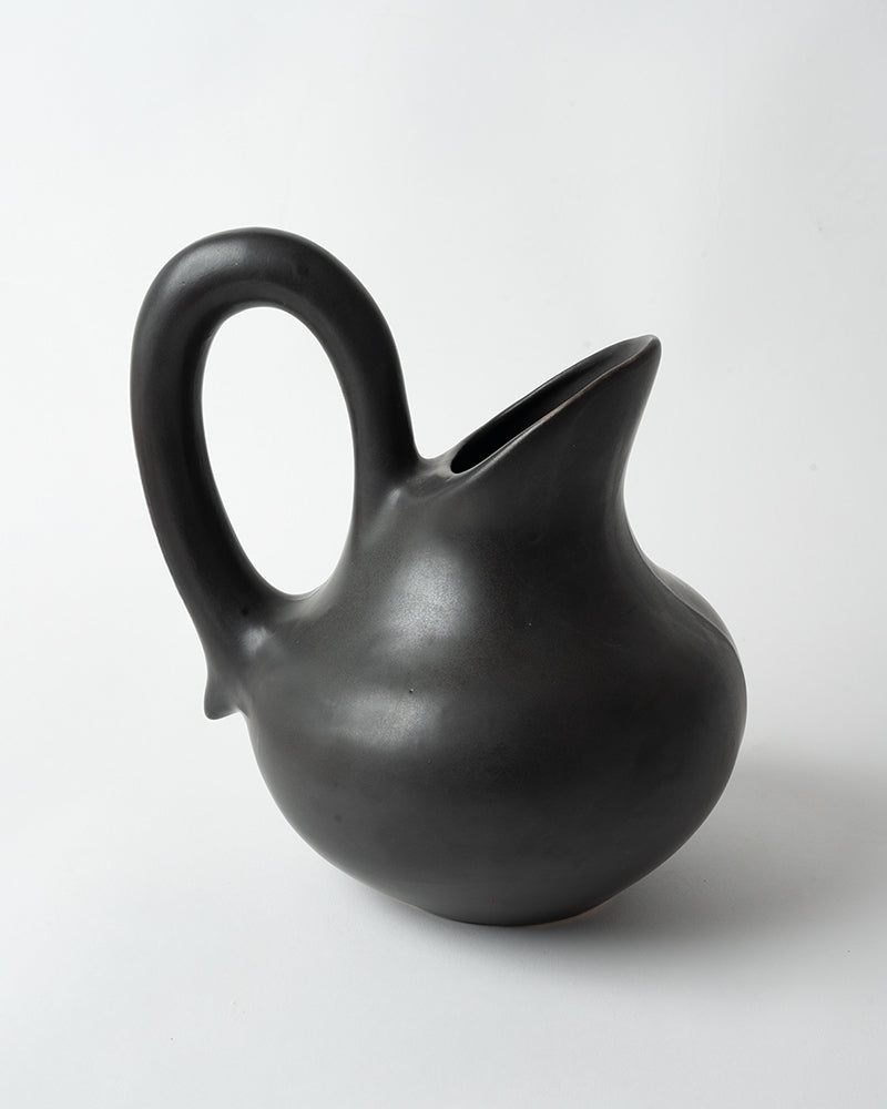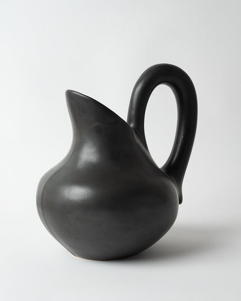 Handmade ceramic pitcher "Idor". Featuring a large spout, an elegant curved handle and subtle geometric engravings on the body. This unique minimalistic pitcher is perfect for serving water or your favorite beverages and adding a statement to your dining table and drinkware experience. Can even be used as a flower pitcher vase.