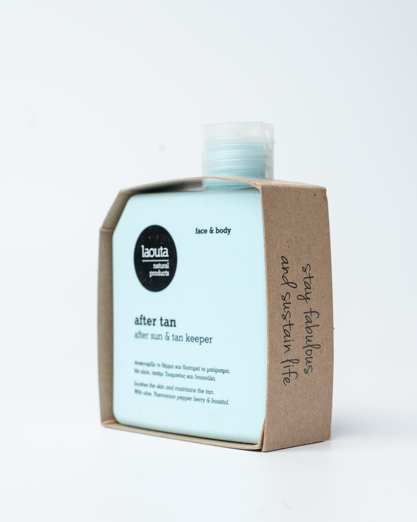 Moisturizing and soothing face and body lotion with Inositol, which activates, intensifies and prolongs skin tanning.