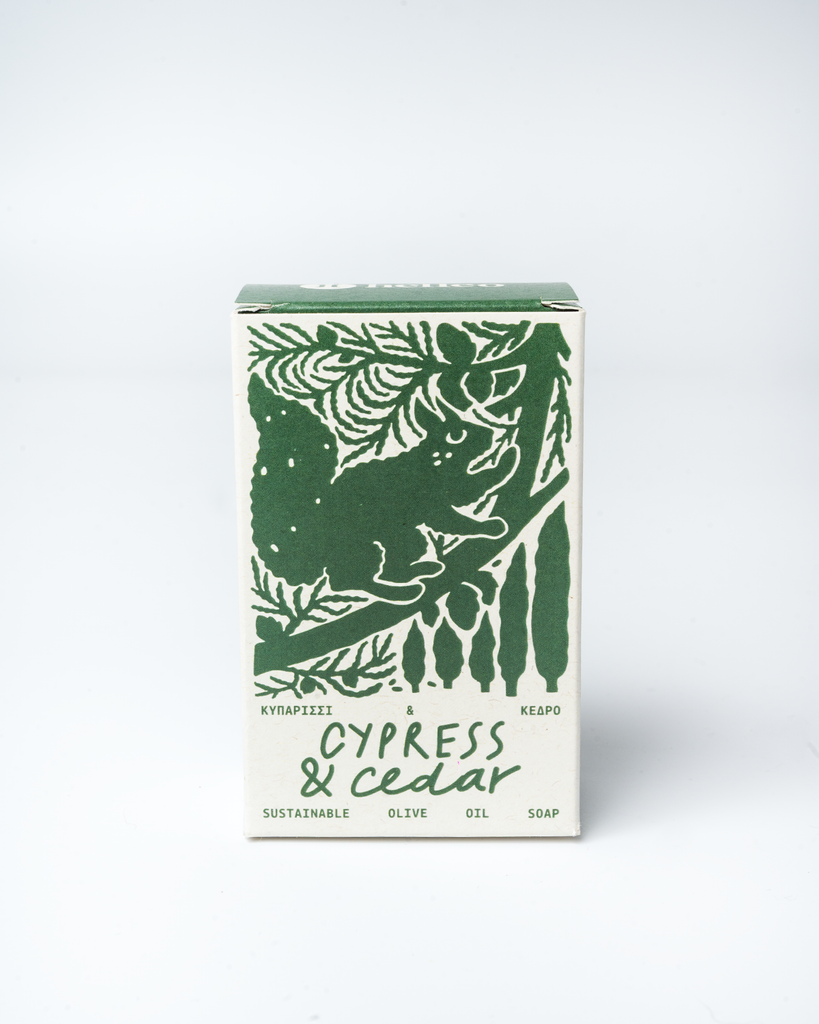 This soap blend is made from the very high canopy layer of our food forest, which is the backbone of an ecosystem providing shade, food, shelter and oxygen. it’s made with our own fresh olive oil together with tea we make from cypress and cedar leaves and berries we harvest all year round.
