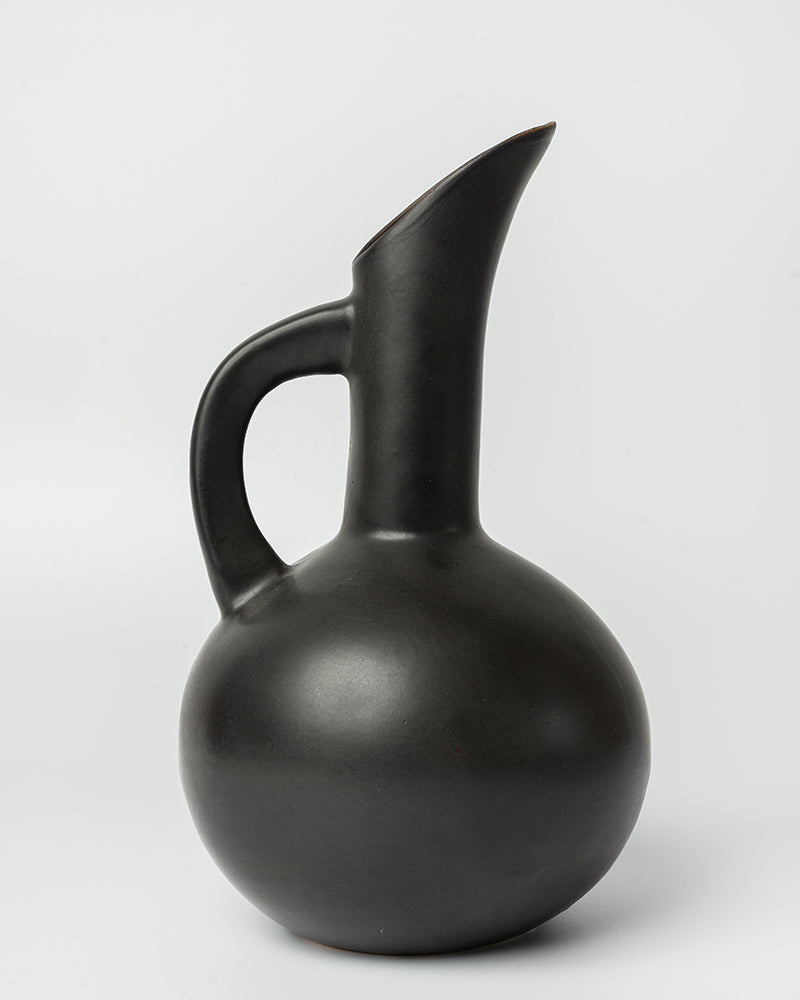 Handmade ceramic pitcher "Kastalia". Featuring a long neck and round spout, with an elegant curved handle and subtle engravings on the body. This unique minimalistic pitcher is perfect for serving water, wine or any of your favorite beverages and adding a statement to your dining table and drinkware experience.